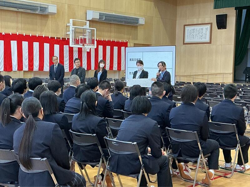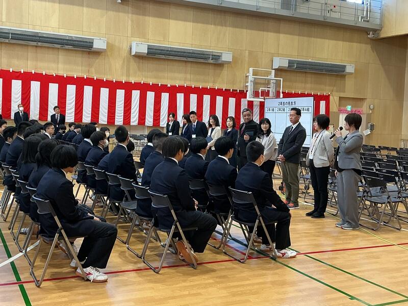 ・校長先生からの話の後に、2年生と3年生の先生、進路支援部と教育支援部の先生を発表をしました。