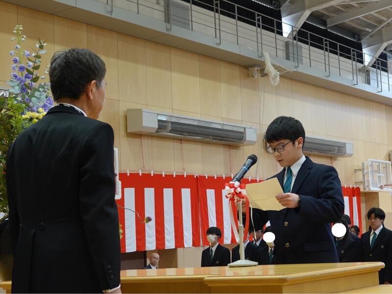 ・「誓いの言葉」では、代表の生徒が「夢に向かって前向きに取り組みたい」と堂々と宣誓しました。
