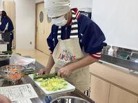 事前学習として、栄養教諭から赤、黄、緑の三つの栄養素や、バランスの良い献立を考える際のポイントについて学びました。1グループ一品の栄養バランスを考えた調理計画を立て「水菜のサラダ、白菜の味噌汁、小松菜とほうれん草の野菜炒め」を作って食べました。