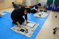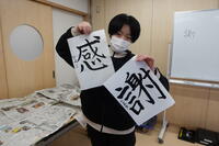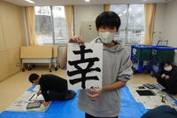 1月13日(火)、冬季休業日と高等部入学者選考に伴う臨時休業日が明け、生徒たちが寄宿舎に戻ってきました。この日は、午前授業だったため、午後の余暇時間に書初めを行いました。