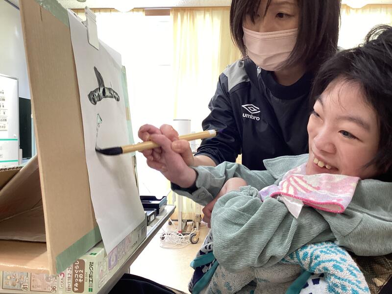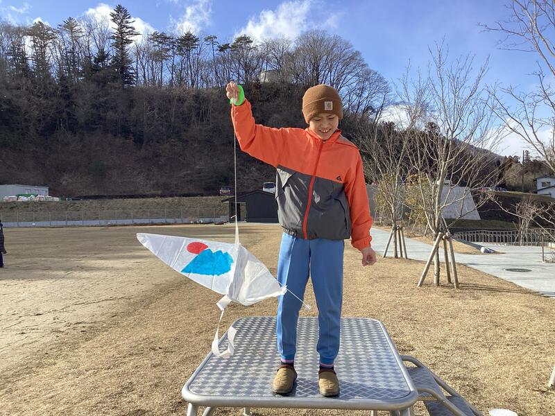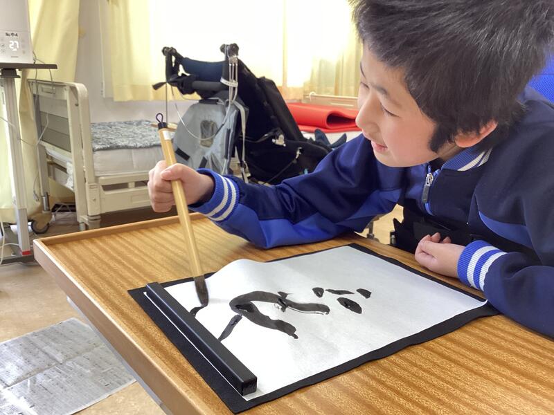 高学年では1月に、お正月の行事について学んだり、書初めやたこ揚げ、かるた等に取り組んだりしました。書初めでは、筆で書く感触や、力の入れ具合で変化する面白い筆跡を楽しみながら、真剣に取り組む様子が見られました。たこ揚げでは、自分でデザインしたたこが実際に風にはためく様子を見て喜んだり、思いのほか高く揚がって驚いたりしていました。かるたでは、みんな自分が先に札を取ろうと、とても白熱した姿が見られました。この時期ならではの活動を、みんなとても楽しんでいました。