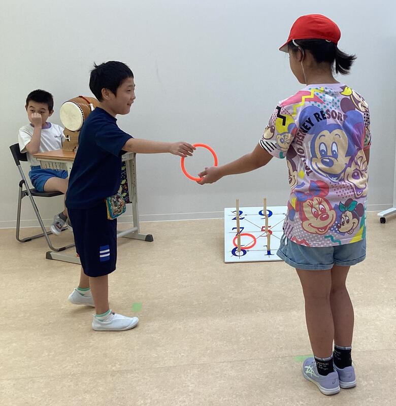 9月26日(金)、秋保小学校3年生の児童12名が来校し、6年生と交流会を行いました。6年生は先日の学校祭で「輪投げ屋さん」を開いたため、その経験を生かして、受付のほか、輪を手渡す・太鼓で盛り上げる・景品を選んでもらう、などの役割も交互に務めながら、輪投げを通じて一緒に楽しいひとときを過ごしました。