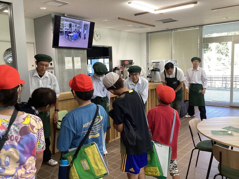 交流会後、秋保小の皆さんは、どまカフェにも立ち寄り、高等部産業技術科生徒の働く姿に目を輝かせていました。