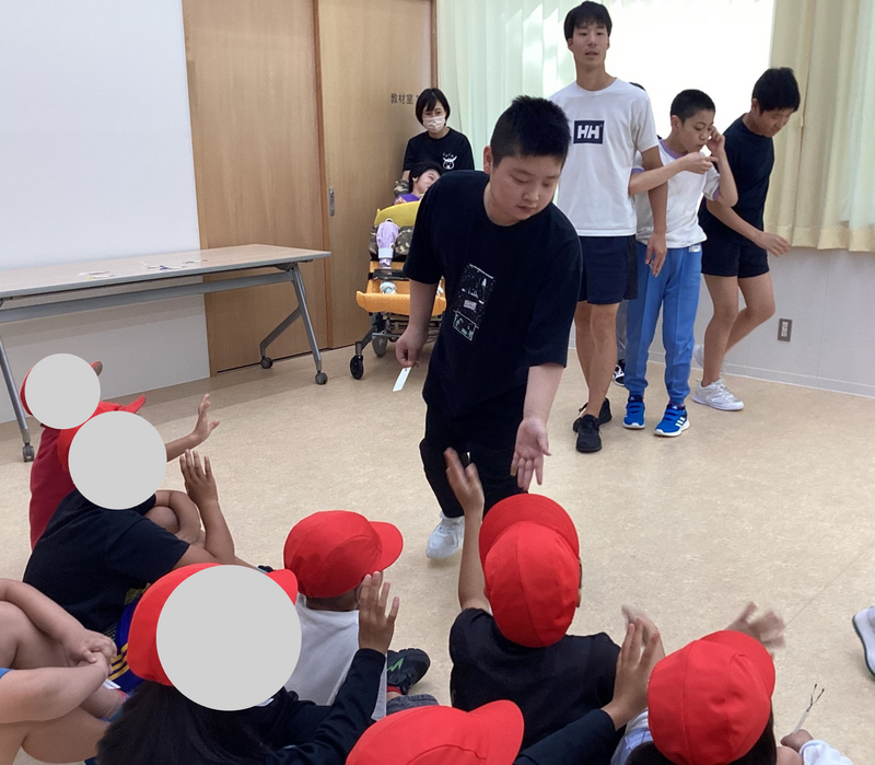 9月20日(土)に学校祭が開催され、小学部低学年では「玉ころ堂」という玉入れや玉転がし、的当てなどボールを使って存分に遊べるコーナーを準備しました。どまカフェはもちろん、他にも風遊びを体験できる「ハリケーンコーナー」やリアルな魚釣りを体験できる「魚釣りコーナー」、射的や水ヨーヨーが楽しめる「かがやき縁日」など、様々なブースを家族と一緒に楽しみました。