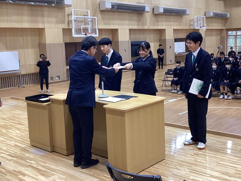 ・10月16日(木)に生徒会役員任命式を実施し、一人ひとりに校長先生から任命状が授与されました。