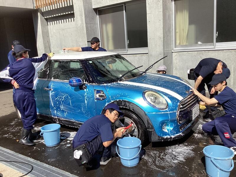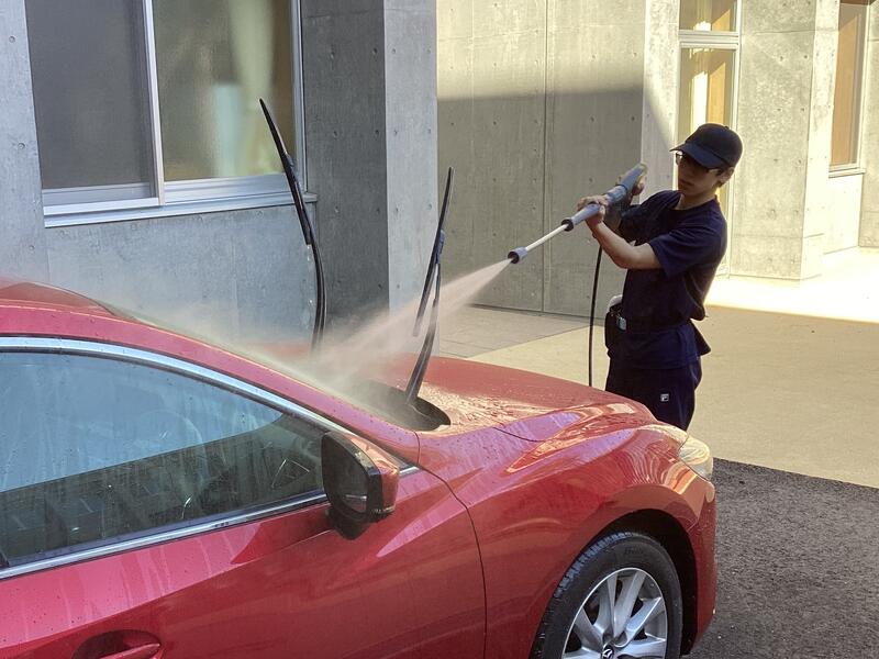 ・流通・サービスコースの授業では、洗車作業に取り組みました。