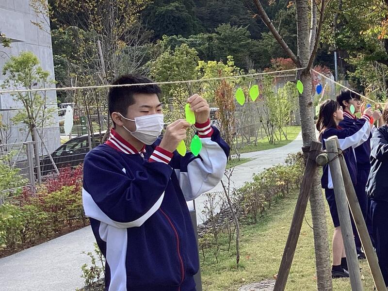 ・秋保町のイベント「アキウルミナ2025光のもり」の提灯作りに続いて、「光る葉」作りに取り組みました。