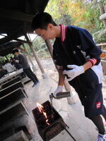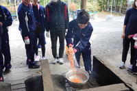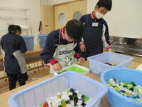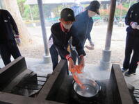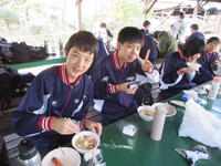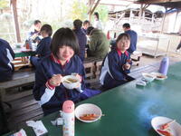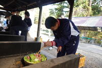 11月13日(木)に高等部普通科1学年で、学校の近くにある森林スポーツ公園へ行って芋煮を作りました。芋煮には、作業学習で育てたネギ、白菜、大根、人参を使用しました。各学級で、火起こしをしたり、具材を混ぜたり、取り分けたりと、役割分担しながら調理し、おいしい芋煮を作ることができました。特に、自分たちで育てて収穫した野菜を使ったため、とても気持ちがこもった芋煮となりました。ほとんどの生徒が完食し、楽しく有意義な一日となりました。