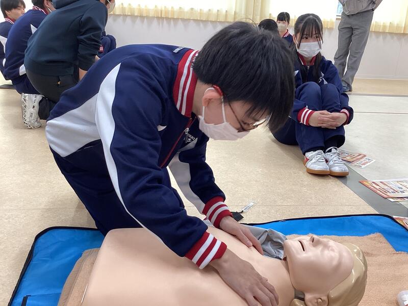 ・12月4日(木)に、1年生の保健体育の授業で普通救命講習を実施しました。